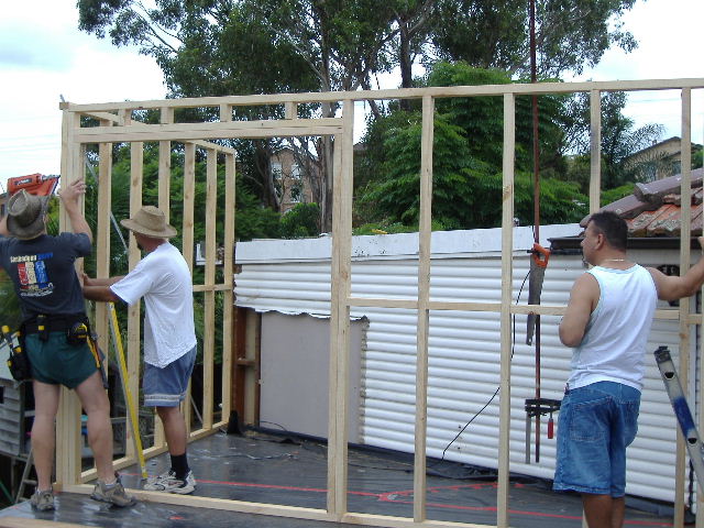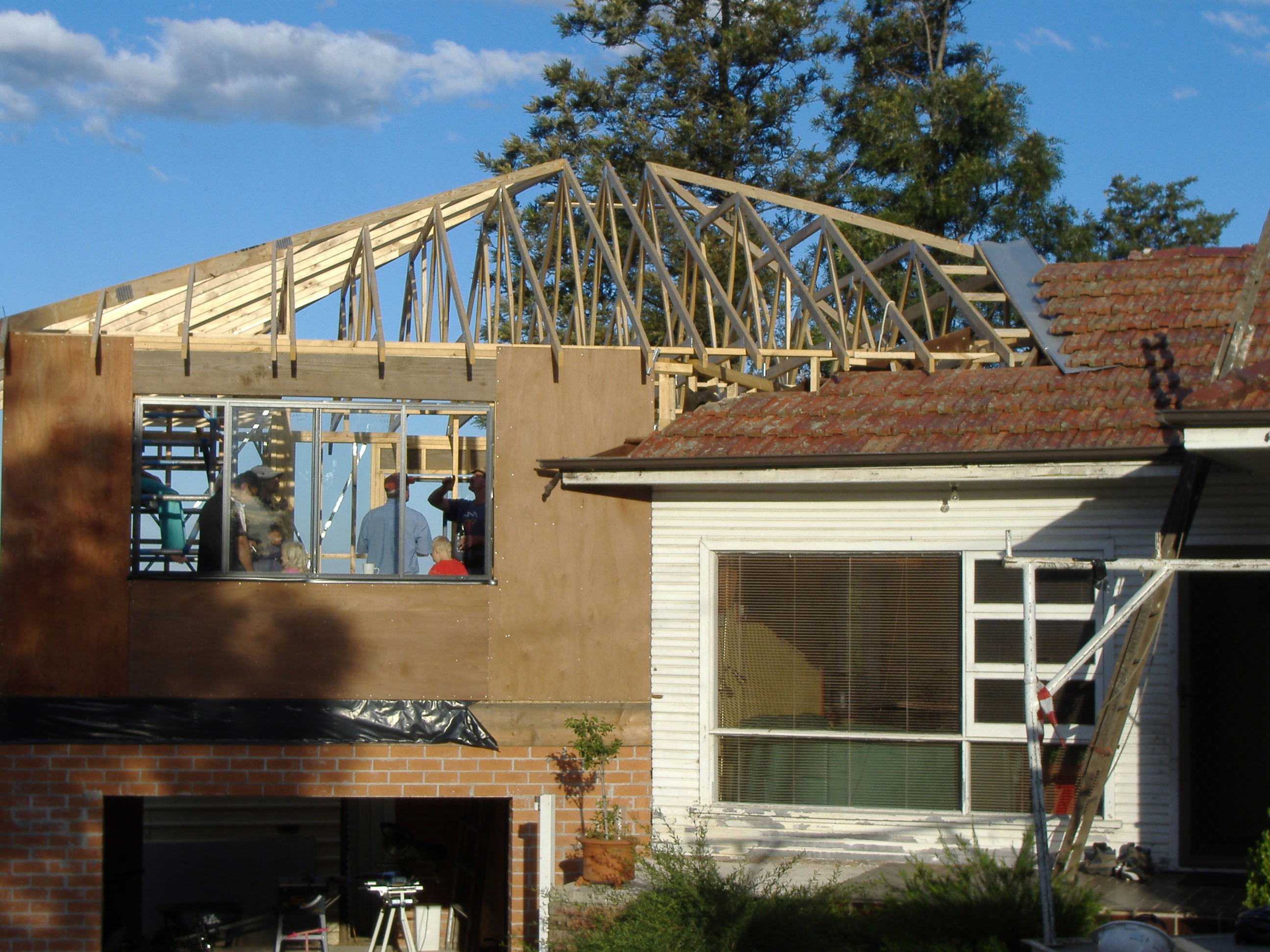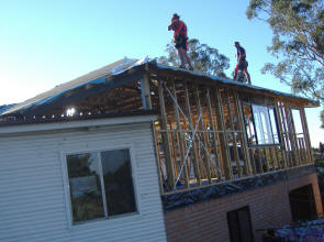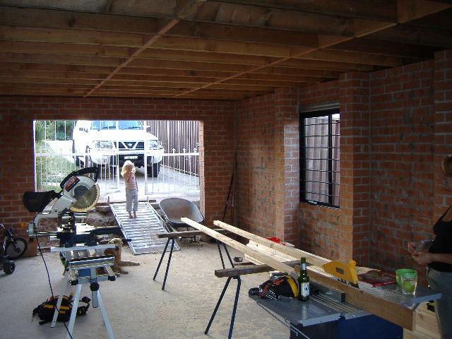 These are the photos of the extension to our house that I am currently building. The lower level is a garage/workshop and storeroom. The 1st floor is a games room and a master bedroom with ensuite and walk-in robe. We started about May 2005, but things are starting to move a bit quicker now.